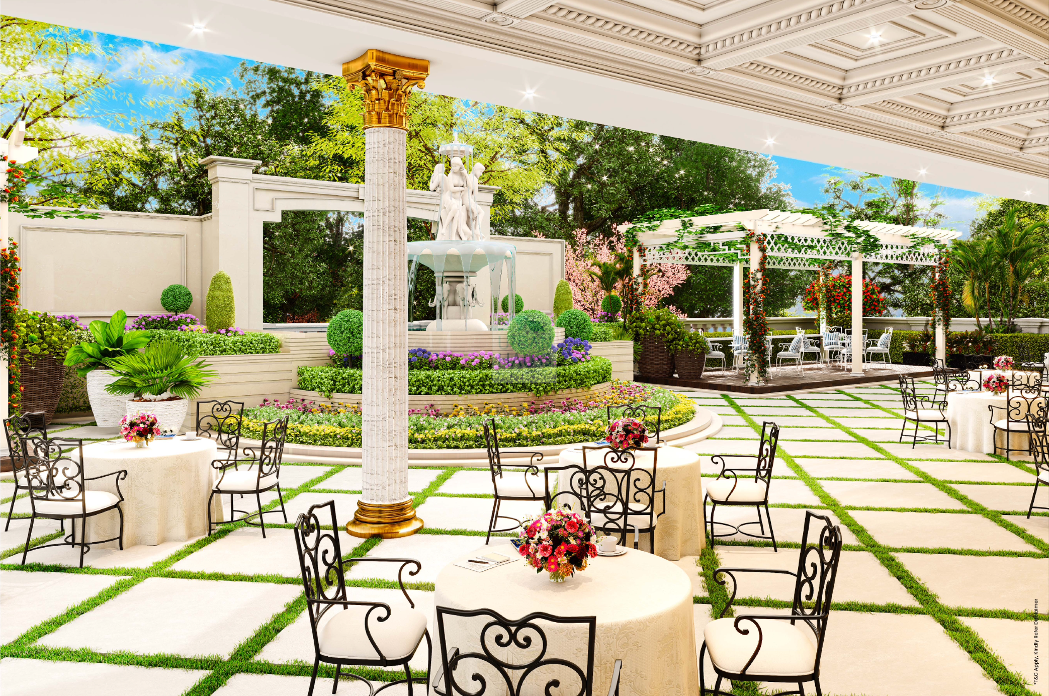 Dolce Vita’s Garden of Florence celebrates the history of Florence via a 60-meter expanse of unadulterated natural luxury with soaring classical arches and a resplendent water fountain evoking vintage extravagance.